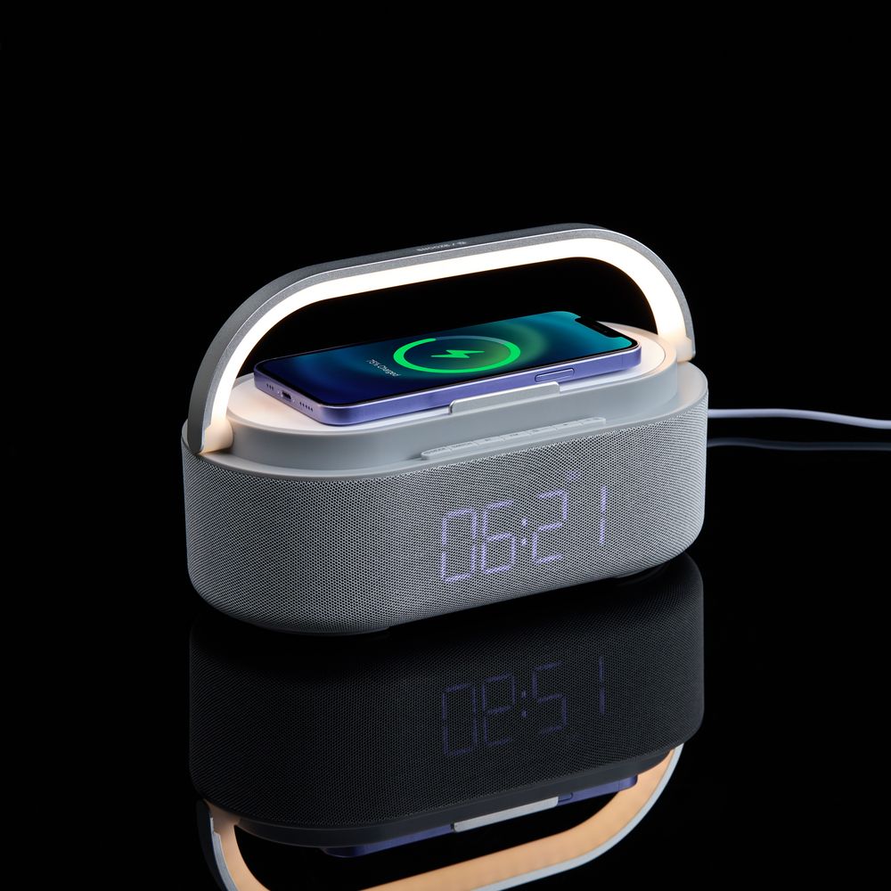 Колонка с часами и беспроводной зарядкой Veske ver.2, серая 6499 ₽