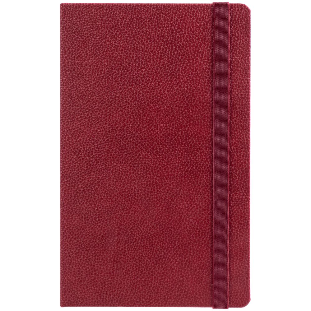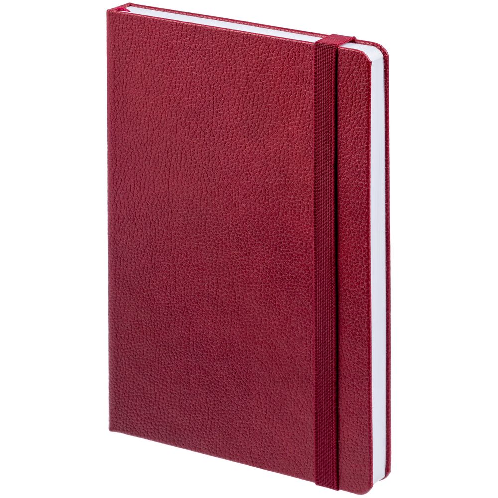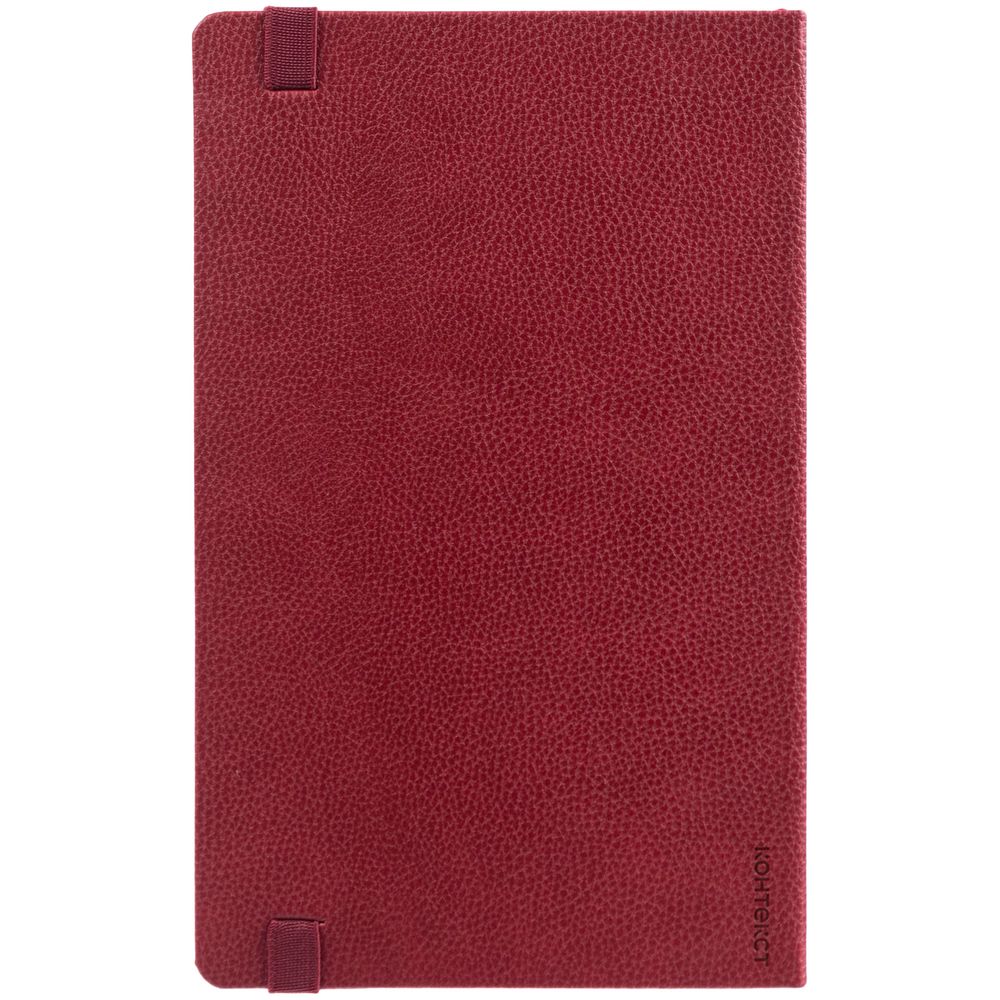 Ежедневник с твердой обложкой, выполнен из материала LaFite, красный РР, дополнен резинкой и ляссе в цвет обложки.