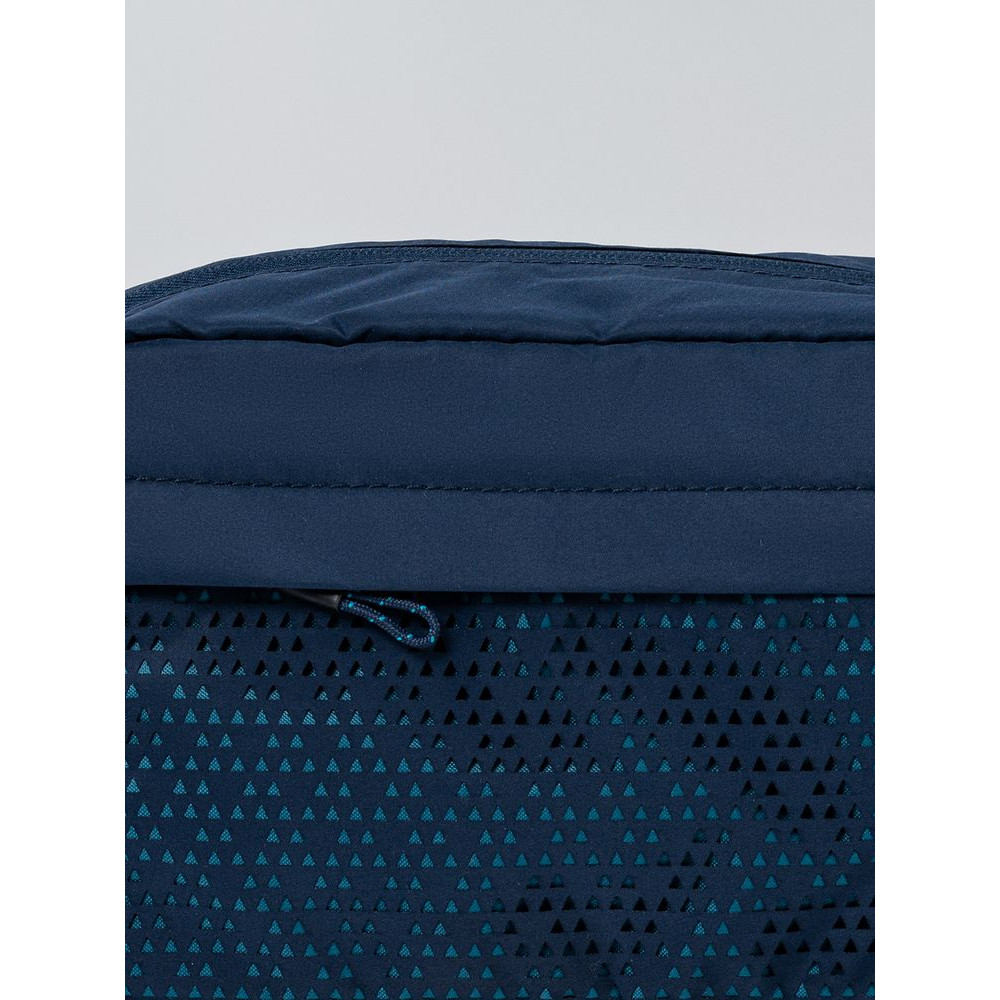 Цвет Outer Space лег в основу коллекции сумок Triangel, позволяя создать модное монохромное сочетание с изделиями Manevr темно-синего цвета. Изделия изготовлены из шелковистого полиэстера, в отделке использована лазерная перфорация паттерна.