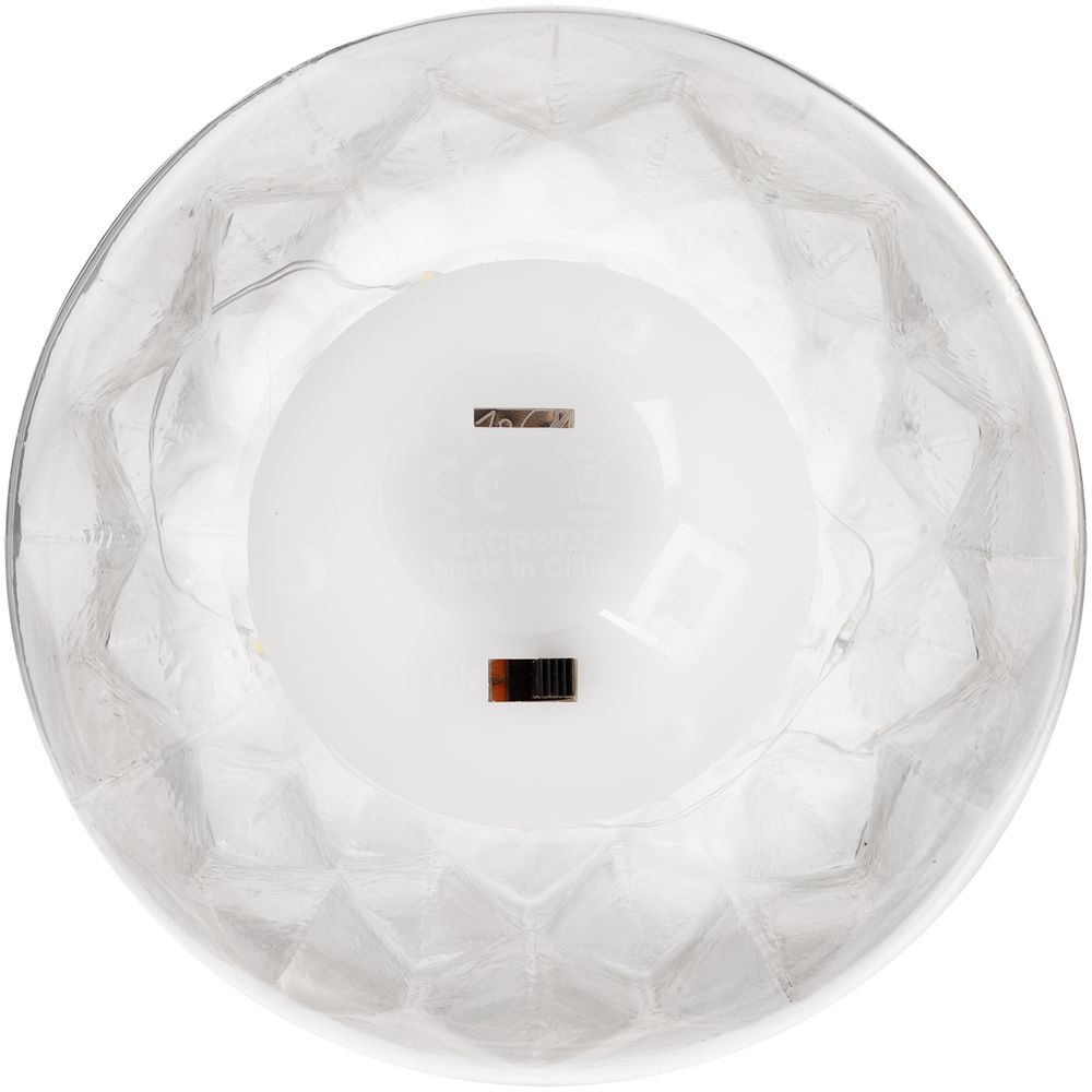 Внутри миниатюрная гирлянда с 15 лампочками с теплым светом. Работает от 2 батареек типа CR2032 (в комплект не входят).