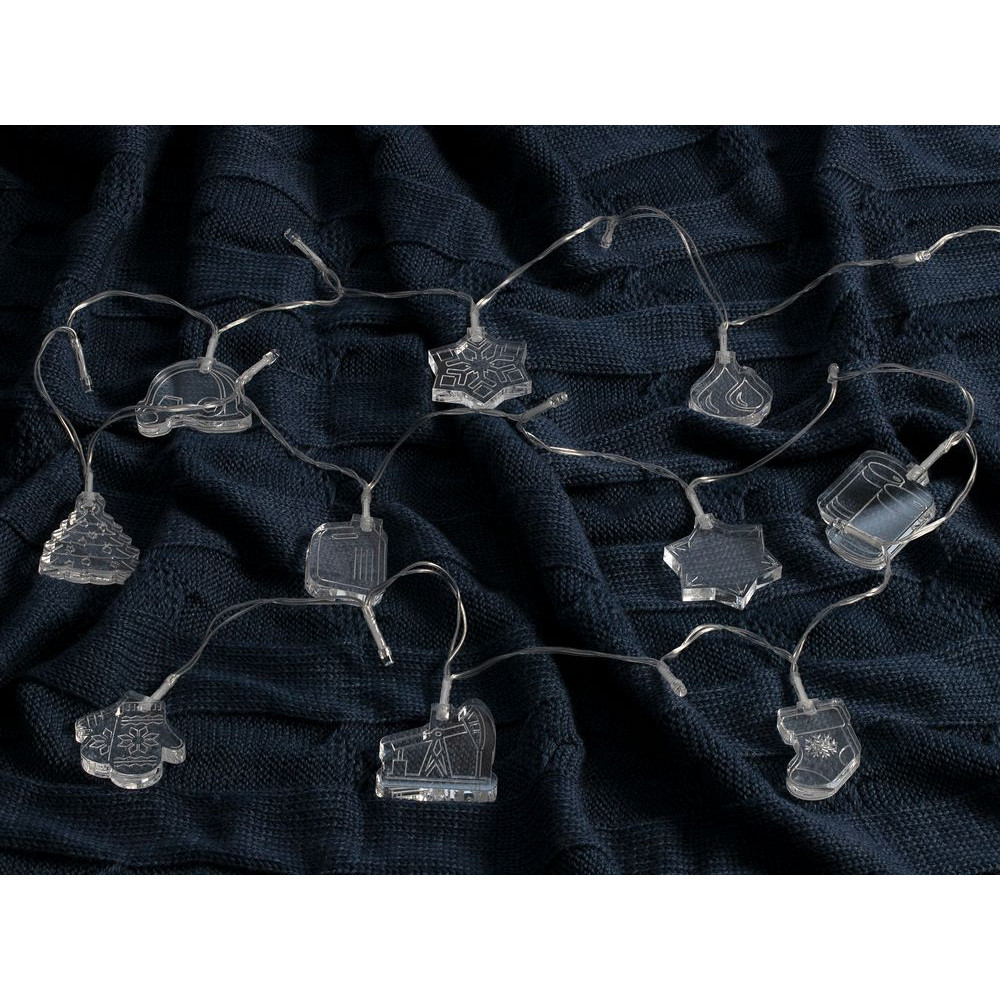 Гирлянда состоит из 20 светодиодов холодного света и 10 акриловых фигурок.