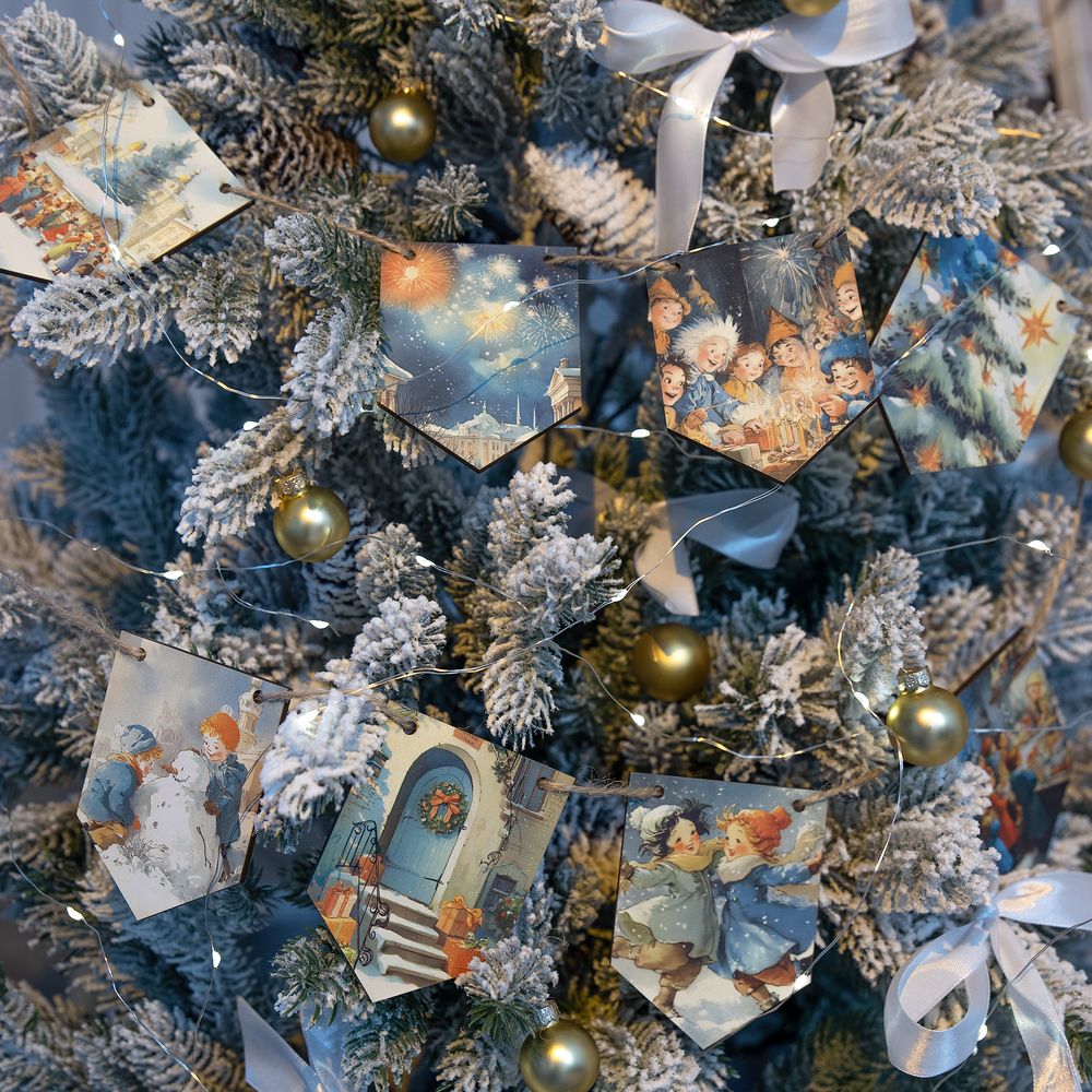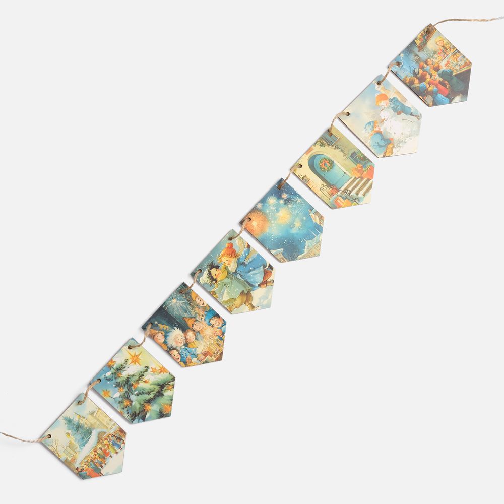 Очаровательная гирлянда из деревянных флажков с винтажными рождественскими иллюстрациями создаст уютную праздничную атмосферу дома или в офисе. Каждый флажок украшен теплыми душевными изображениями, будто сошедшими со старинных открыток. Они с легкостью перенесут в мир новогодних сказок и детских фантазий — туда, где и хочется оказаться в самое волшебное время года!
