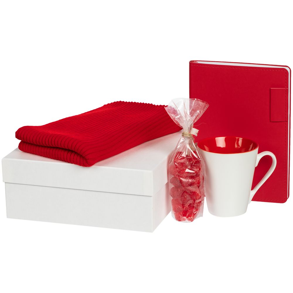 Оригинальный стильный шарф станет модным акцентом в деловом гардеробе и согреет в прохладную погоду. Яркая кружка идеально подойдет для любимых напитков и создаст атмосферу уюта даже во время напряженного рабочего дня. А для дополнительного заряда энергии в наборе есть вкусный и полезный снек, который поможет поддержать бодрость духа.
