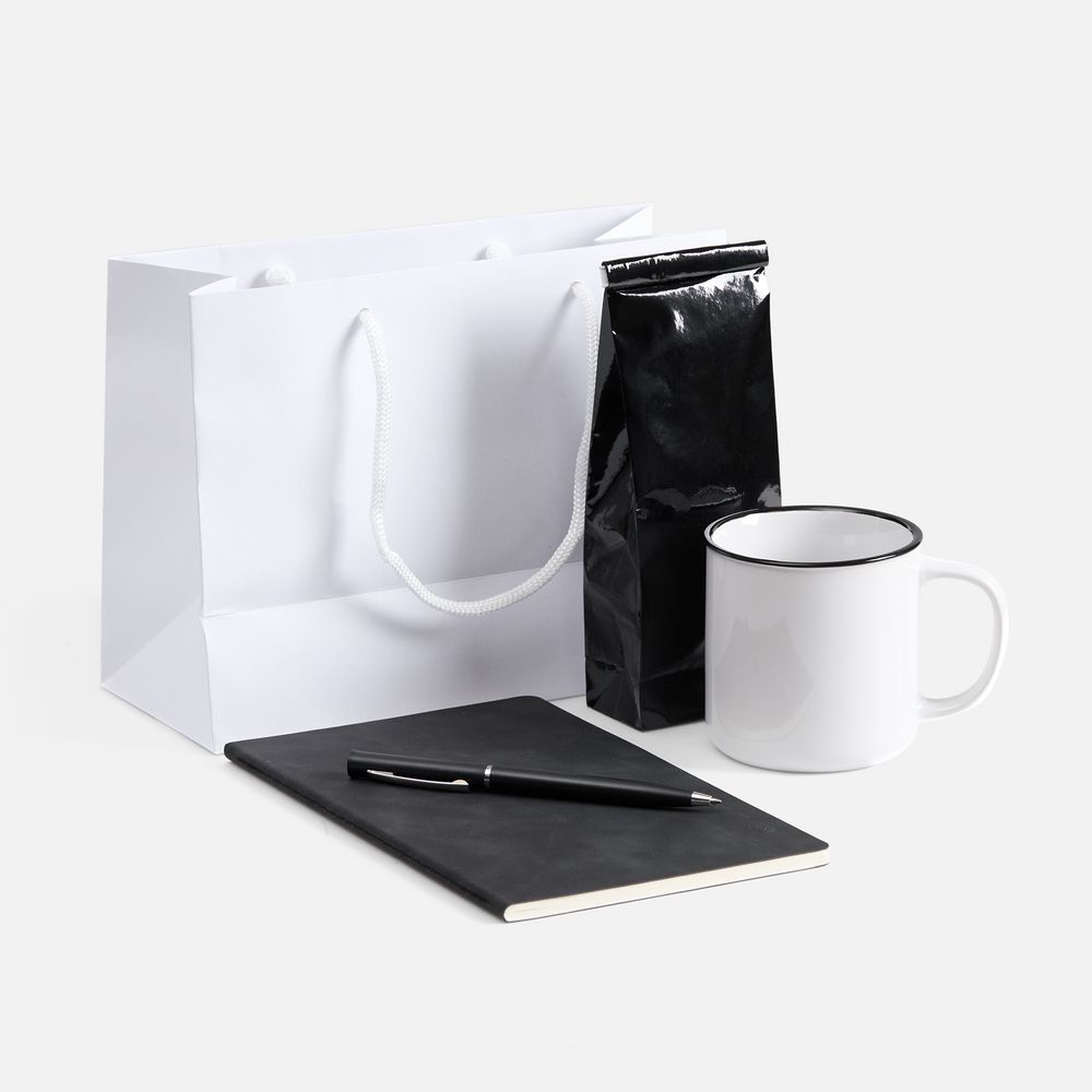 Набор для творческих натур: блокнот в мягкой обложке поможет легко спланировать день или сохранить на будущее удачные идеи, а с уютной чашкой ароматного чая в руке будет легче расслабиться в конце рабочего дня или насладиться перерывом с коллегами.