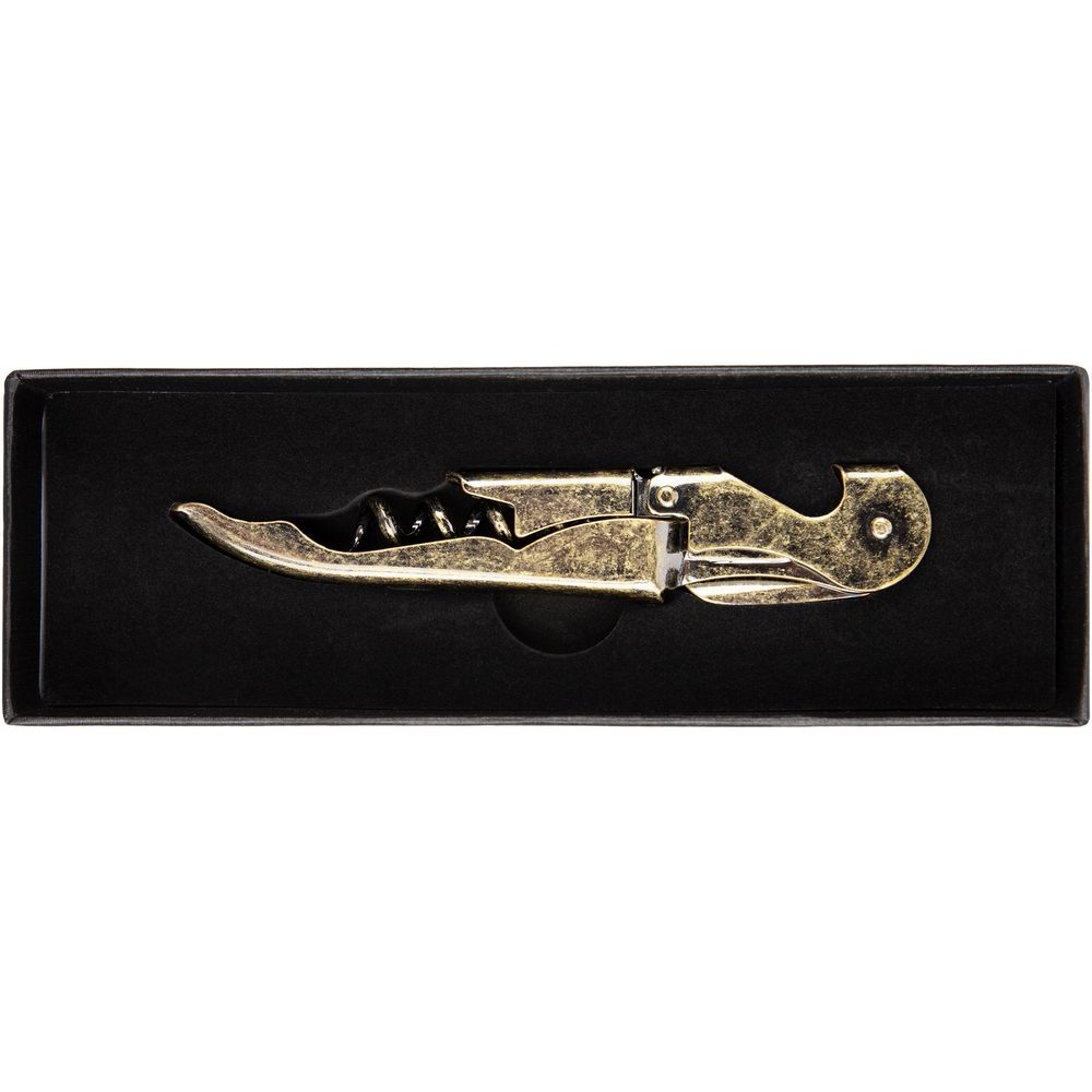 Нож выполнен в оттенке античного золота с эффектом потертостей — как будто из поколения в поколение предавался в семье виноделов, и с его помощью была откупорена не одна бутылка. Эта версия особенно удачно впишется в интерьер кухни, винотеки или ресторана, если они оформлены в неоклассческом, классическом американском или прованском стилях.