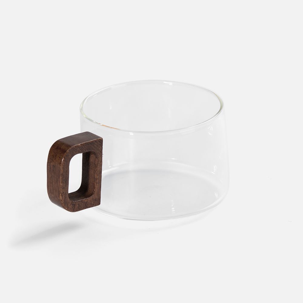 Прозрачное стекло подчеркивает цвет чая, кофе или травяного сбора, удобная деревянная ручка не нагревается и комфортно лежит в руке, а подставка-блюдце защищает стол от капель и добавляет эстетики.