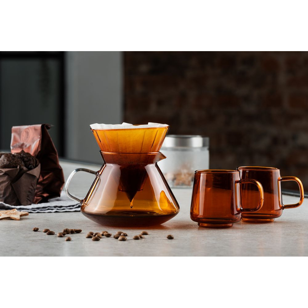 Элегантный кофейный набор Force Nexus добавит эстетики кофе-брейку и порадует ценителей своим изысканным современным исполнением. Благодаря тонкому боросиликатному стеклу кружки, воронка и кофейник Force Nexus очень легкие, а янтарный цвет привлекает внимание и добавляет теплоты.