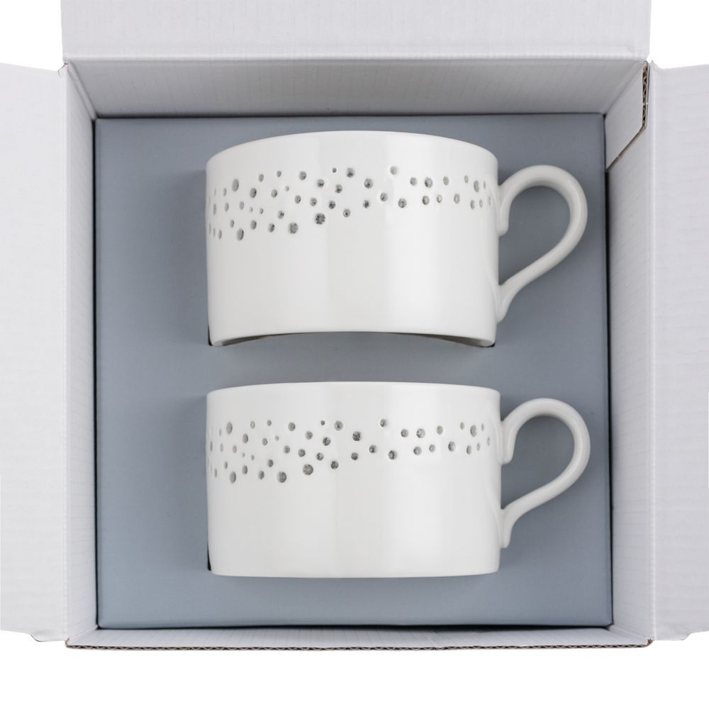 Чайные пары Coralli — легкая, словно светящаяся изнутри посуда с легендарным узором «рисовое зерно». Благодаря тонкому слою прозрачной глазури кружка выглядит кружевной и ажурной, при этом напиток гарантированно остается внутри.