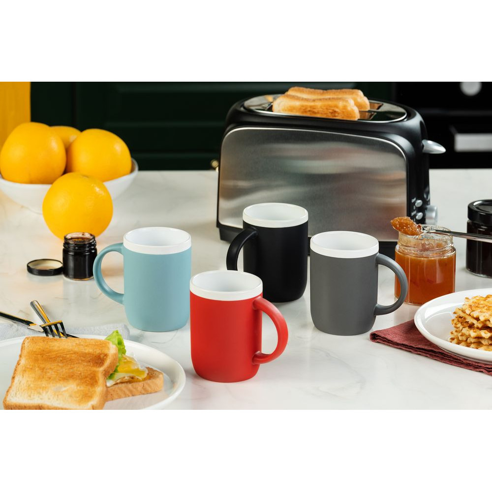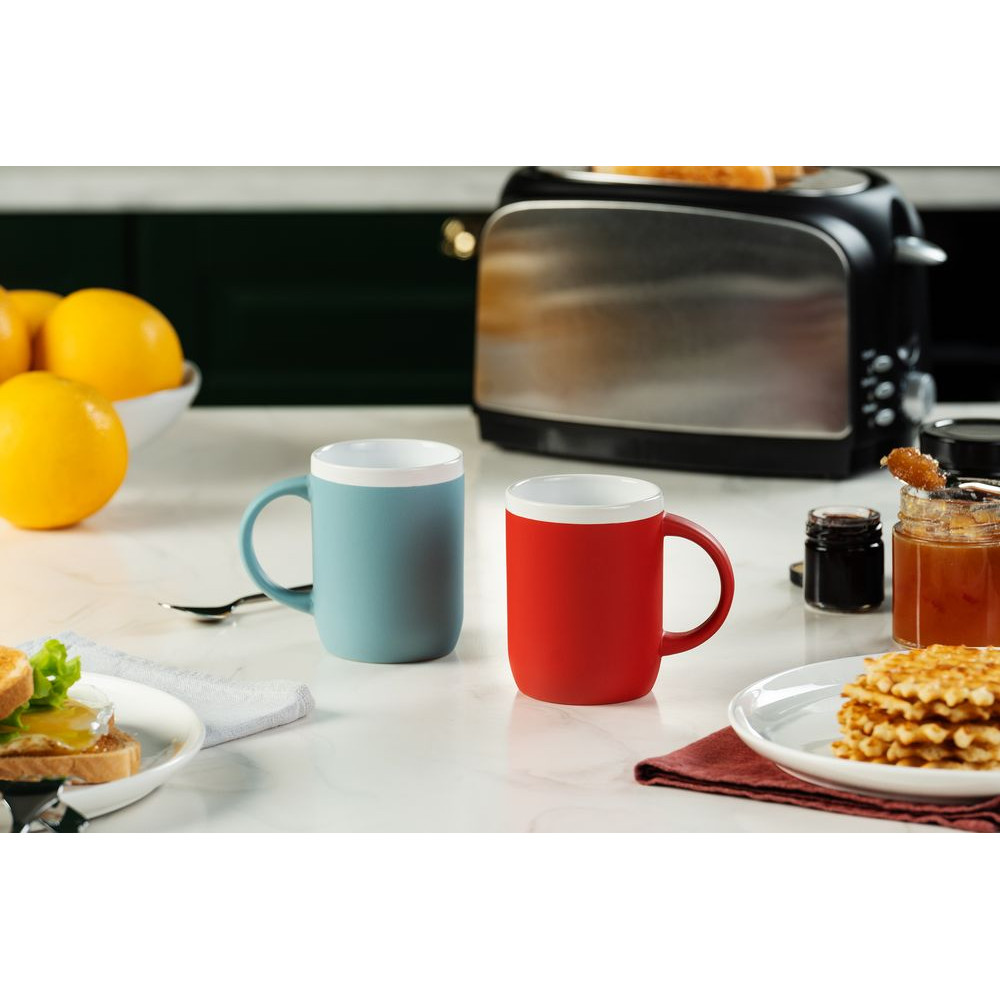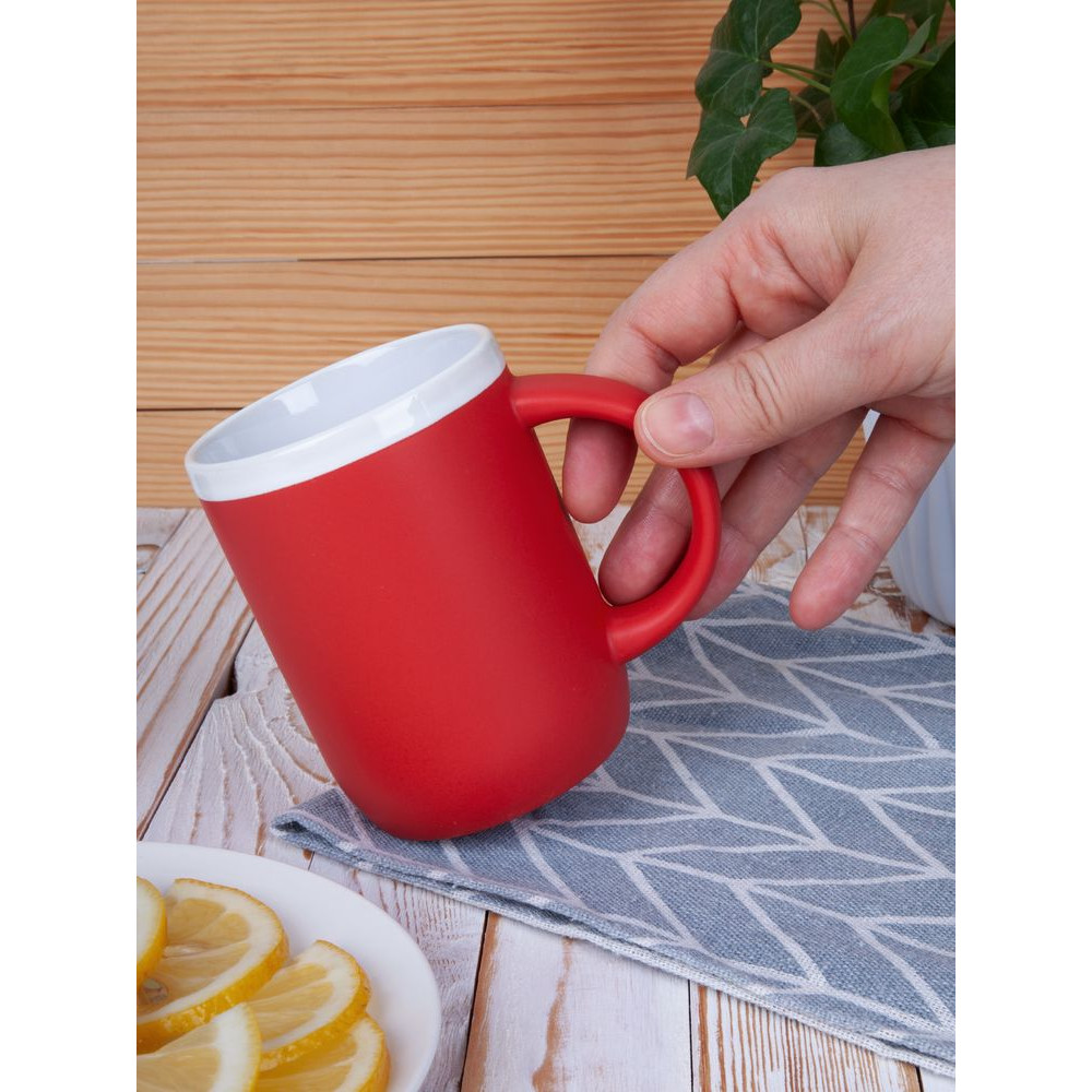 Матовая кружка Borde с белым глянцевым ободком по краю привлекает внимание ярким дизайном и лаконичной формой. Оптимальный объем и эргономичная ручка делают эту кружку удобной для ежедневного использования.
