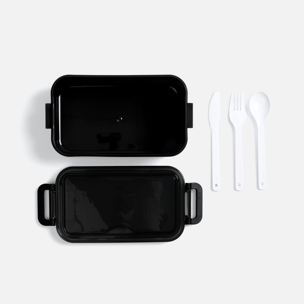 Удобная конструкция с крышкой на защелках обеспечивает надежную фиксацию. Специальное отделение под крышкой позволяет хранить столовые приборы, освобождая дополнительное пространство в сумке.