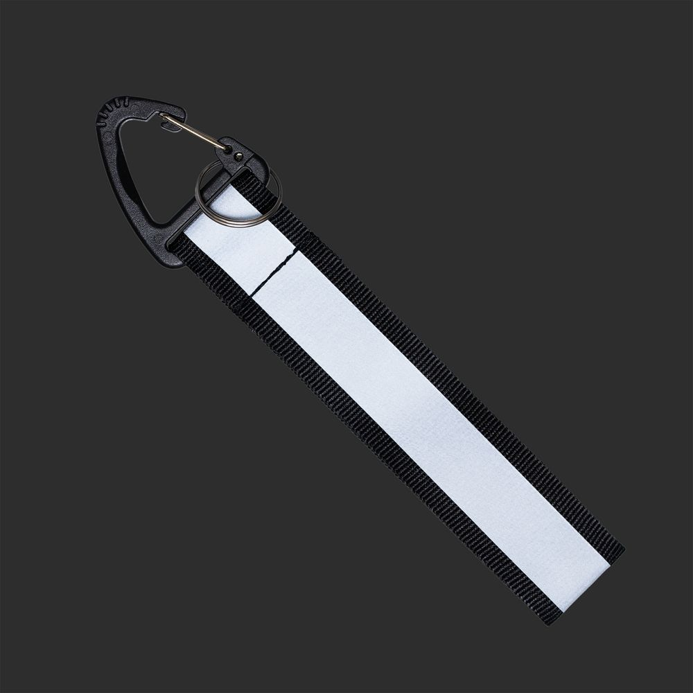 Светоотражающий брелок Flashline становится заметным в темное время суток при попадании света на центральную полосу.