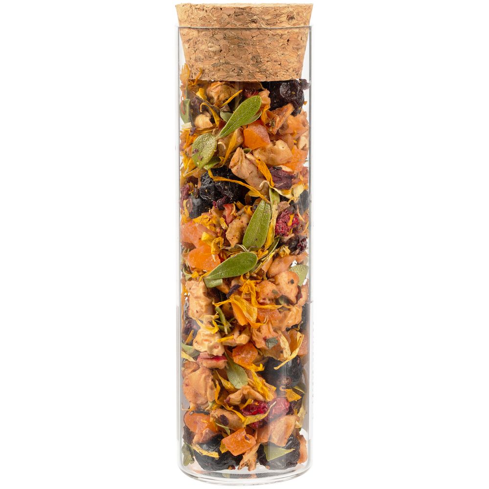 • фруктовый напиток «Фруктовый мир» (состав: каркаде резанный, сушеное яблоко, ежевика сублимированная, облепиха сублимированная, смородина сублимированная, малина сублимированная, календула, плоды черноплодной рябины, кожура шиповника, лист брусники, цукаты «папайя», ароматизатор «малина», ароматизатор «вишня»), вес 40 г.