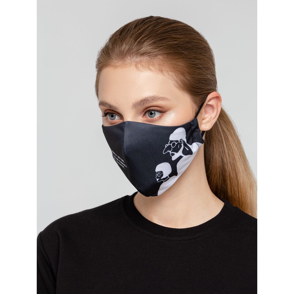 Дизайн принта: Яков Коган.Многоразовая маска из дышащей ложной сетки с ярким принтом с гигиенической хлопковой подкладкой и заушниками-резинками.