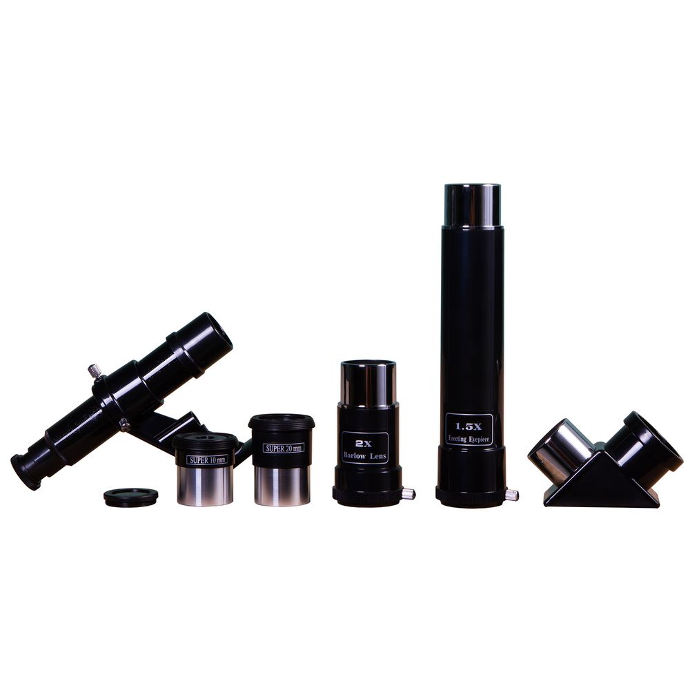Данная модель представляет собой рефрактор из ахроматических элементов, поэтому передает четкую и контрастную картинку без цветовых искажений.В комплект входит лоток для аксессуаров, крепящийся на треногу.