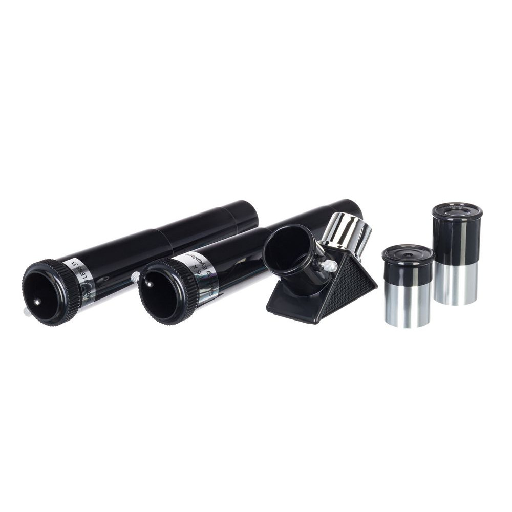 - Окуляры в комплекте: H6 мм (50х), H20 мм (15х), оборачивающий окуляр 1,5х; линза Барлоу 3х