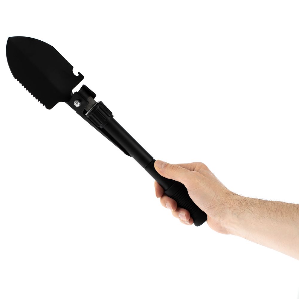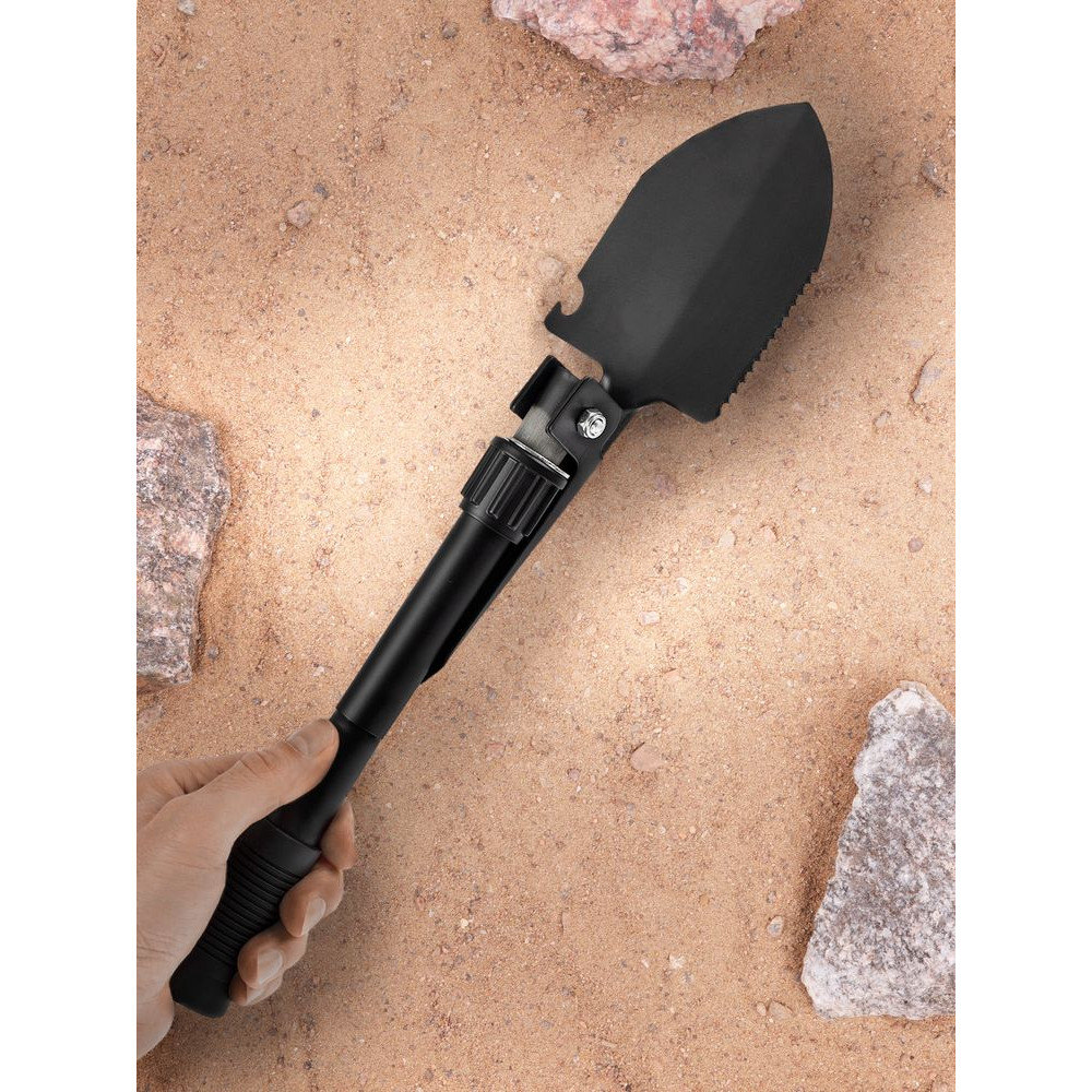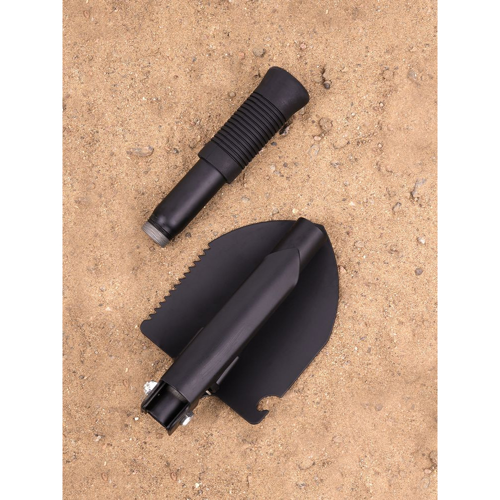 Компактная складная лопата с резиновой рукояткой — многофункциональный инструмент, который понравится автомобилистам, дачникам и туристам. Заменит целых 5 предметов: лопату, мотыгу, кирку, пилу, открывашку.