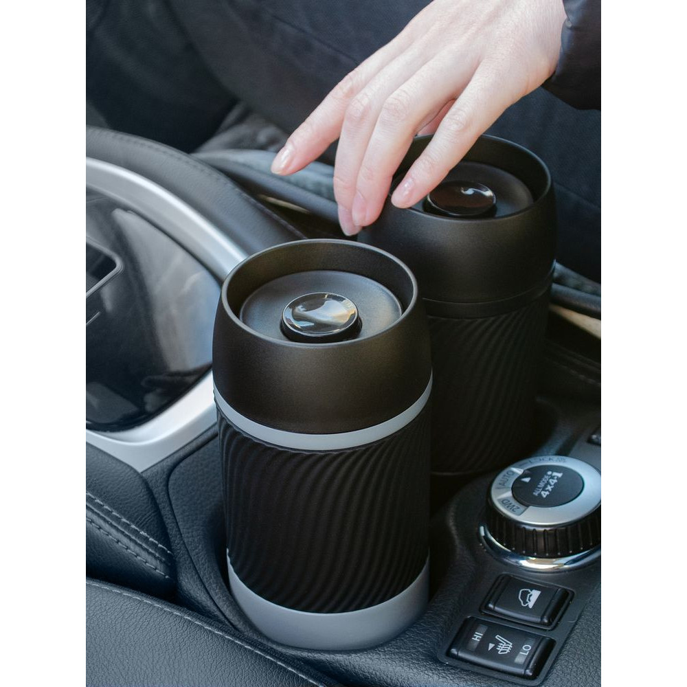 Силиконовая манжета позволяет комфортно держать стакан и в дождь, и в жару, и в холод. С ней стакан не выскользнет из рук, а ладони не замерзнут от соприкосновения с металлом зимой.