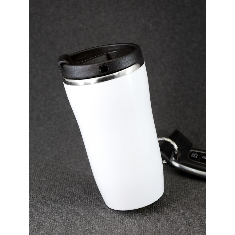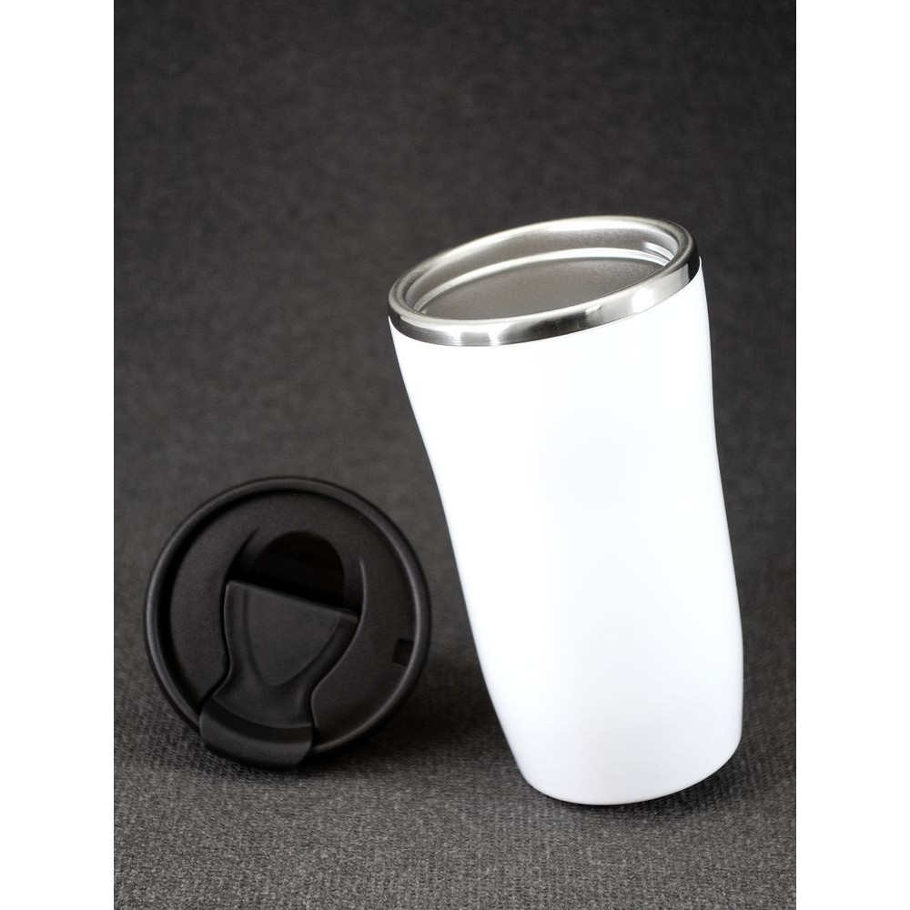 Двухслойная конструкция из пластика снаружи и пищевой нержавеющей стали внутри. Герметичная завинчивающаяся крышка с откидным клапаном для питья. В отверстие в крышке можно вставить шнурок для удобного ношения стакана на руке. Шнурок в комплект не входит.