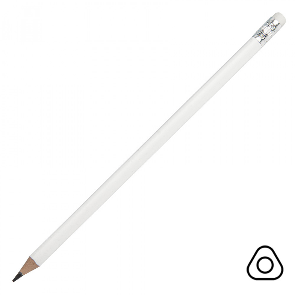 • Карандаш чернографитный трехгранный TRINITY с ластиком, пластиковый, HB, белый