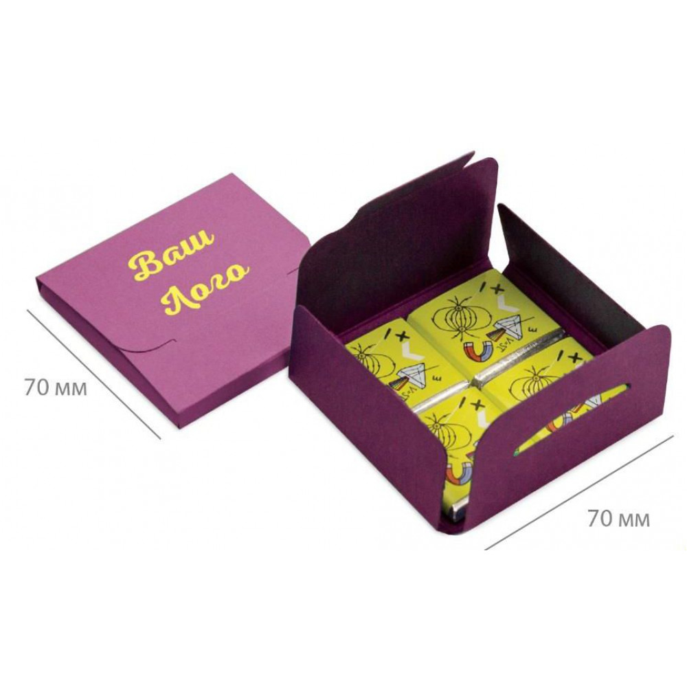 - Обертка с полноцветной печатью на каждой плитке шоколада.