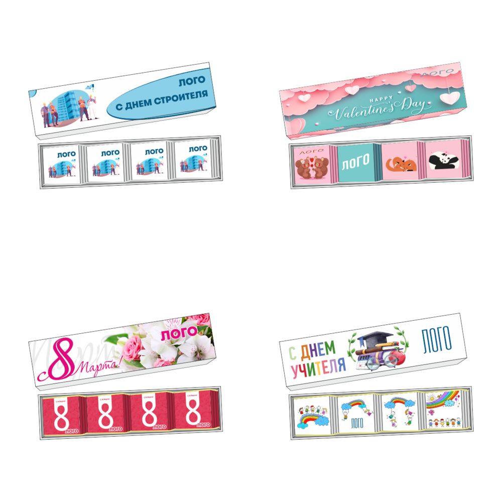 • Обертка с полноцветной печатью на каждой плитке шоколада.