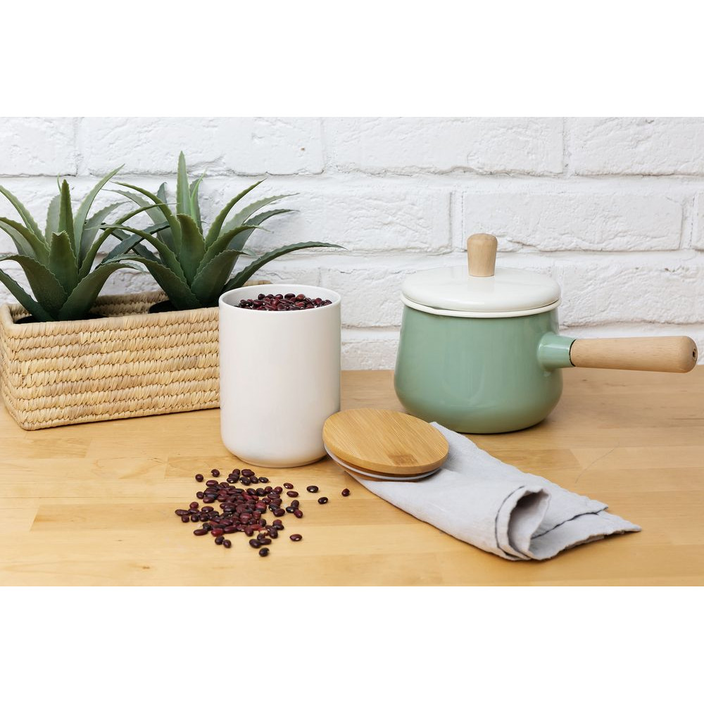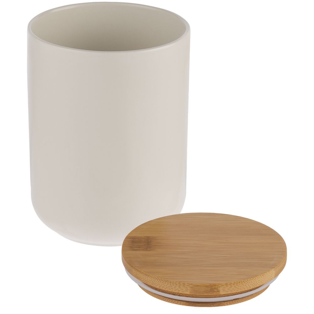 Фарфор и бамбук — идеальная пара для светлой современной кухни. Силиконовый уплотнитель надежно защищает содержимое банки от влаги и посторонних запахов.