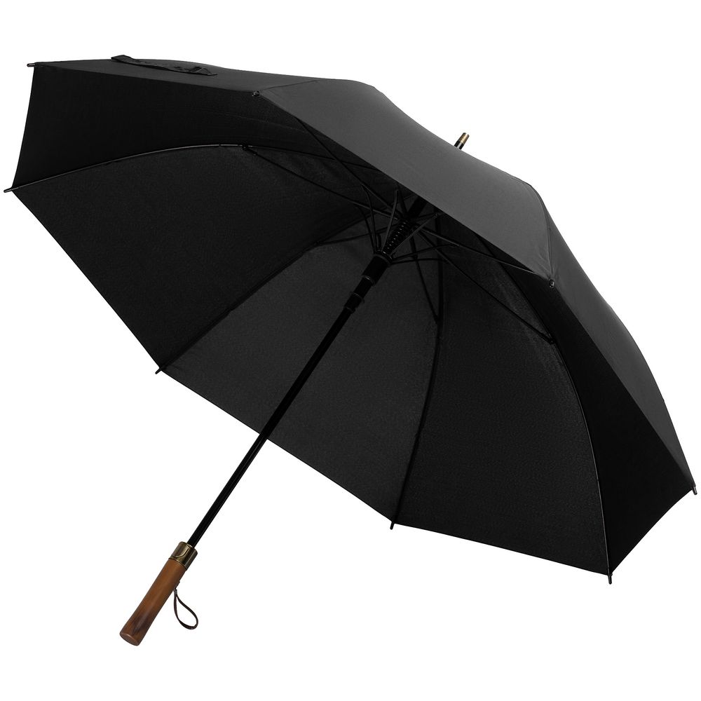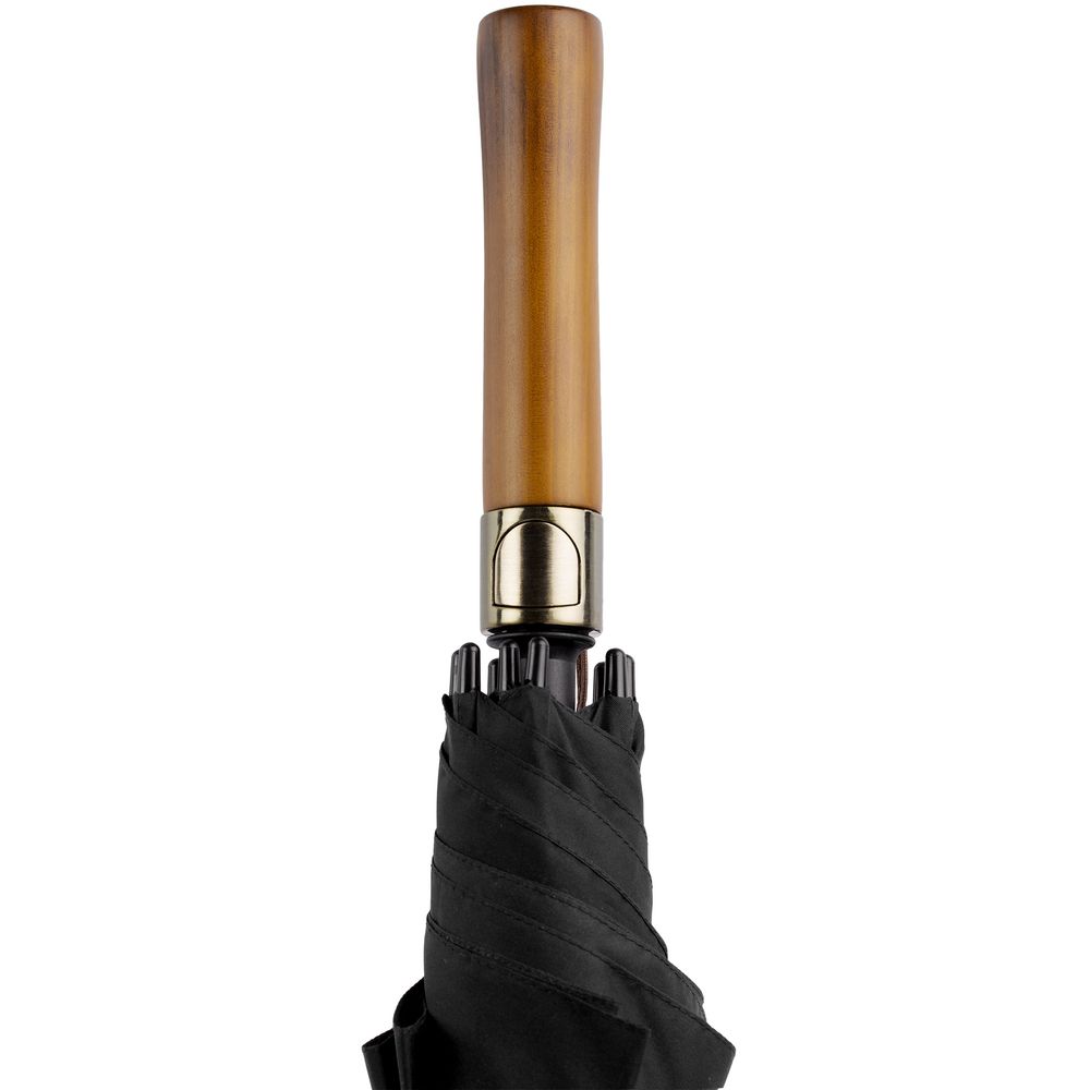 • Прямая деревянная ручка с петлей из натуральной кожи и кнопкой открытия зонта